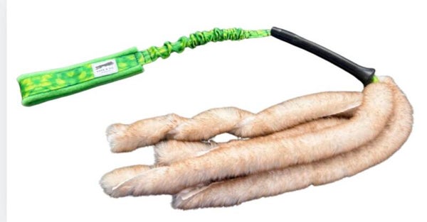 The Puppy Chaser is a 1-meter interactive toy made just for puppies. With soft faux fur, and a milky tug. A bungee handle for comfortable tugging, it’s perfect for safe, engaging playtime and great for restrained recalls.